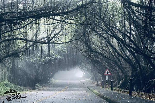 ↑ 有容路是30幾年前的阿兵哥們在此種下可以抗風耐潮的榕樹,經過歲月的灌溉與強勁的東北季風的影響,原本光禿禿的道路現在變成一個美麗的綠色隧道。
