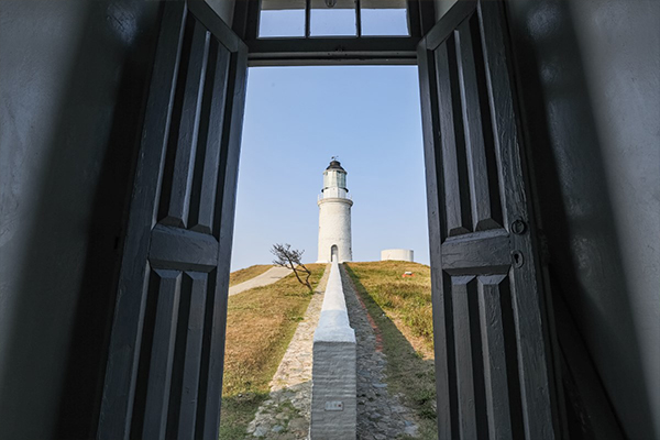 【東莒燈塔】清同治11年(1872年)建造的英式燈塔,為東莒島居民心中的精神象徵,當地居民稱之為白毛城。現為國家二級古蹟。臺灣第一座使用花崗岩所建造的燈塔,「年資」已逾百年,屬於白色身影多年來屹立不搖;東莒燈塔最特別的地方,就是在連接燈塔與辦公室的草地上,築有一道長達30公尺的白色防風矮牆,主因是東犬燈塔位處高地,風勢強勁,為免守燈人手上的煤油燈被風吹襲,才特地築起。兩邊寬度不同是有巧思的,且讓專業導遊為您娓娓道來。
