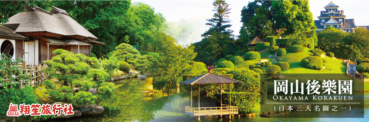 【日本三大庭園之一~岡山後樂園】日本三大名園之一,西元1686年(貞享3年)江戶時代的大名岡山藩主池田綱政為了靜心養身和接待賓客所建造的庭園,至今已有300多年的歷史,佔地面積達13萬多平方米。整個庭園的設計採借景法之池泉迴遊式庭園,以操山、岡山城做為背景,唯心山及澤池為中心所建的一座林泉迴遊式庭園,。