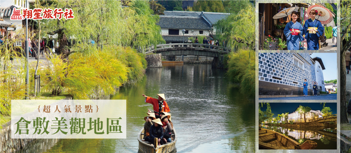 【人氣景點~倉敷美觀地區】白壁與水道的街景,倉敷川兩岸搖曳的綿長柳樹枝柳是倉敷的特色,來到倉敷,「美觀地區」絕對是必遊之地。因為昔日德川幕府直轄的區域而成為豐富物資的集散中心,進入現代之後陸續有許多洋風建築及美術館誕生,東洋風情與西方文化交融,為倉敷美觀增添更多藝術氣息,也使得這裡成為米其林二星觀光景點。貫穿中心區域的倉敷川中,時而可見小船悠遊,乘小舟賞兩岸的町家街道,倉敷的美吸引許多人來此一賞往昔情懷。