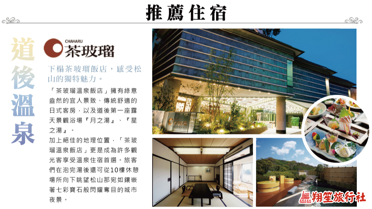 道後茶玻飯店 或 道後大和屋 (兩人一室) 或同級